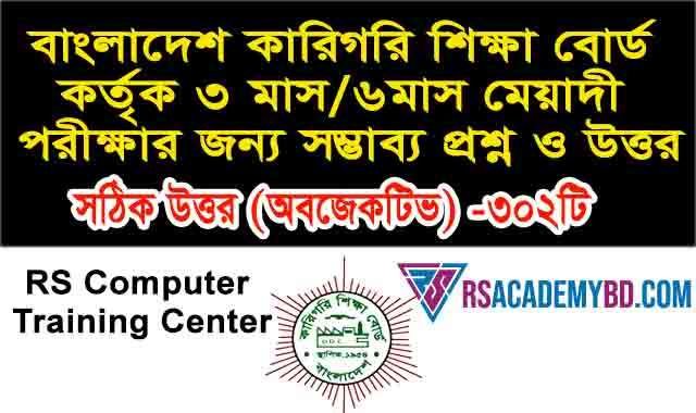 বাংলাদেশ কারিগরি শিক্ষা বোর্ড কর্তৃক ৩ মাস ও ৬ মাস মেয়াদী কম্পিউটার অফিস অ্যাপ্লিকেশন পরীক্ষার অবজেকটিভ প্রশ্ন ও উত্তর এখানে উল্লেখ করা হয়েছে। এছাড়াও নিচের লিংকগুলো থেকে অন্যান্য বিষয়গুলো জানা জাবে।